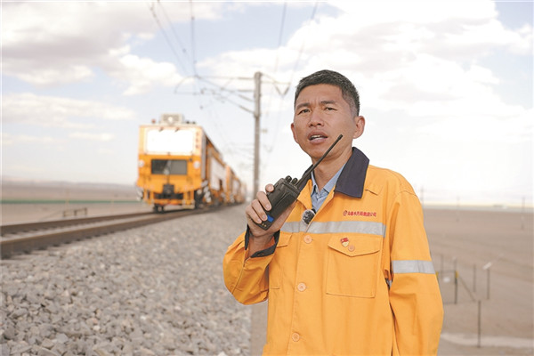 近日,喬濟(jì)源從若羌站登上了開(kāi)往依吞布拉克站的貨運(yùn)列車(chē)。他專(zhuān)注地查看前方線路、接觸網(wǎng)和沿線電務(wù)設(shè)備,觀察軌道的細(xì)微變化。“我們車(chē)間融合工務(wù)、電務(wù)、供電3個(gè)專(zhuān)業(yè),每月都要進(jìn)行巡檢。”他說(shuō)。