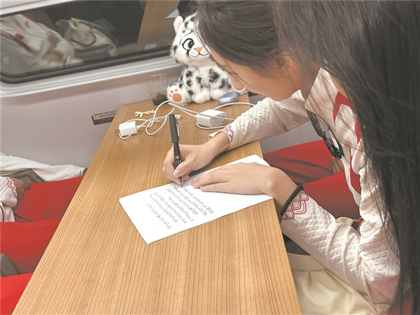 此前,四位同學(xué)已看過(guò)奧運(yùn)冠軍在林芝的宣講新聞,能在列車(chē)上與冠軍“隔空相遇”,讓他們既驚喜又遺憾。因?qū)嵺`支隊(duì)需趕往下一站開(kāi)展宣講和志愿活動(dòng),他們沒(méi)有時(shí)間與冠軍們當(dāng)面交流。“兩支宣講隊(duì)伍,一個(gè)在學(xué)術(shù)領(lǐng)域刻苦鉆研,一個(gè)在體育賽場(chǎng)上不懈拼搏,我們都在為建設(shè)祖國(guó)而奮斗。”實(shí)踐支隊(duì)隊(duì)長(zhǎng)左宏量說(shuō)。當(dāng)隊(duì)員王珺儀提議寫(xiě)一封信轉(zhuǎn)交奧運(yùn)冠軍時(shí),大家都為這個(gè)想法感到興奮,迅速著手起草。信中,四位清華學(xué)子寫(xiě)下了他們的心聲: